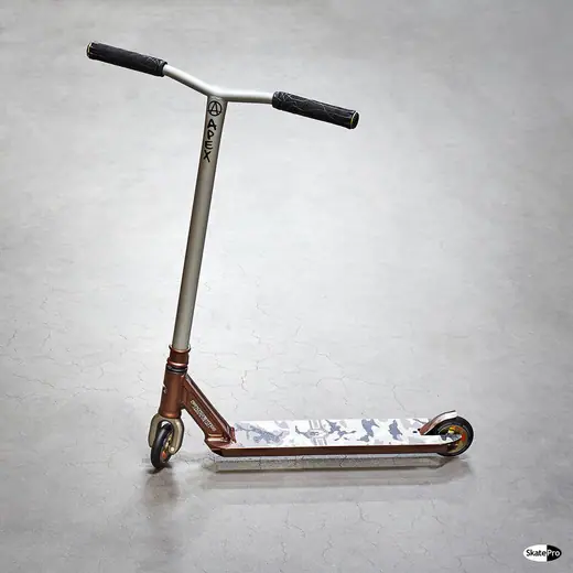 Our newest Military V2 custom pro scooter is ideal for extended sessions in the desert. Sandy camo colours have been selected to give this complete scooter a subtle army style. We authorised our expert firing-squad, and they achieved nothing but perfection in assembling the exquisite parts from Phoenix, Lucky, Ethic, Apex, and District.