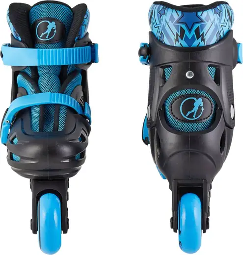 Size adjustable rollerblades. Boasting a lightweight and sporty design, they serve as excellent beginner skates for any aspiring skater. These children's rollerblades feature buckles to secure the feet in place and padded liners for added comfort.